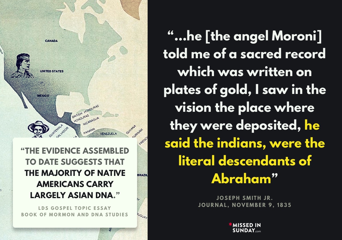 “The evidence assembled to date suggests that the majority of Native Americans carry largely Asian DNA. Scientists theorize that in an era that predated Book of Mormon accounts, a relatively small group of people migrated from northeast Asia to the Americas by way of a land bridge that connected Siberia to Alaska. These people, scientists say, spread rapidly to fill North and South America and were likely the primary ancestors of modern American Indians.”