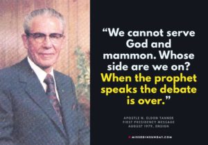 Excerpt from a First Presidency Message, August 1979, Ensign, N. Eldon Tanner (First Counselor in the Presidency): 1 “We must turn all this about. We cannot serve God and mammon. Whose side are we on? When the prophet speaks the debate is over.” Additional study: 14 Fundamentals in Falsifying the Prophet – https://rationalfaiths.com/fourteen-fundamentals-falsifying-prophet/ References [ + … Continue reading The Debate is Over
