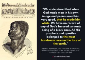 An article titled ‘The Negro Race’ by George Reynolds published and edited by George Q. Cannon in the Juvenile Instructor, October 15 1968: 1 The Negro Race Amongst the many causes that have contributed to change the appearance of the human family and make mankind appear to be of different races, we must consider the … Continue reading White